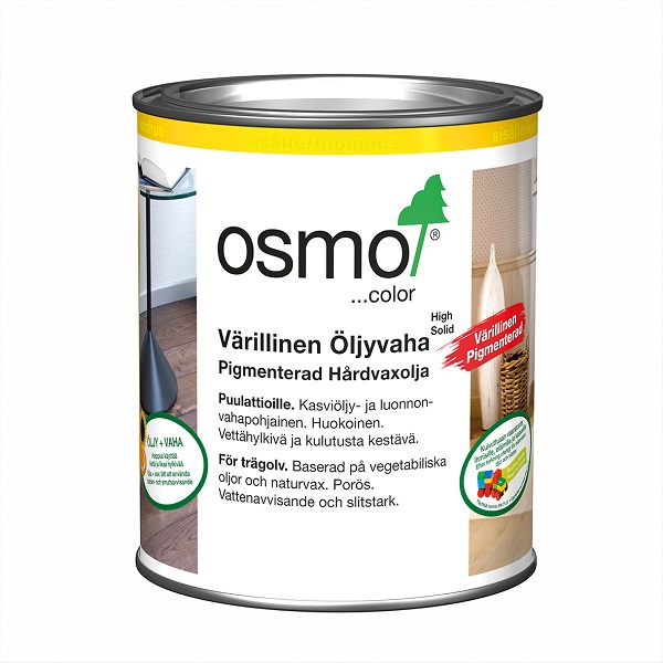 Osmo Color Värillinen öljyvaha on kevyesti sävytetty, kestävän suojan antava pintakäsittelyaine puulattioille, puuportaille ja huonekaluihin. Öljyvahattu pinta kestää hyvin kulutusta, hankausta, kosteutta ja likaa.